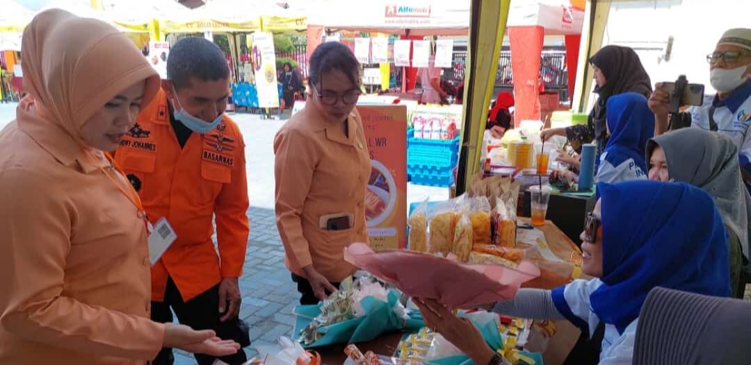 Kepala Basarnas Palu bersama Ketua DWP up. Kantor Pencarian dan Pertolongan Palu didampingi oleh Kaur umum, Kasiop, Ketua dan pengurus DWP mengunjugi stand booth yang ada. Foto : Humas Basarnas Palu