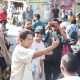 Saat perjalanan menuju ke atas panggung pasangan calon gubernur dan calon wakil gubernur ini tampak santai dan ramah menyapa masyarakat.